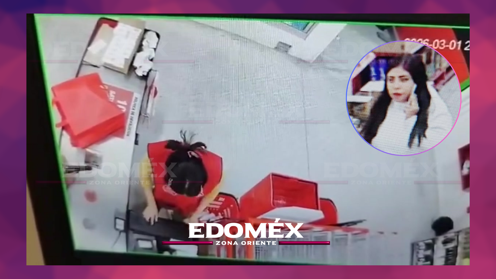 Una mujer fue captada presuntamente cometiendo un asalto la tarde de ayer en una tienda 3B ubicada frente a la base de Paseos, en el municipio de #Ecatepec, #Edomex.