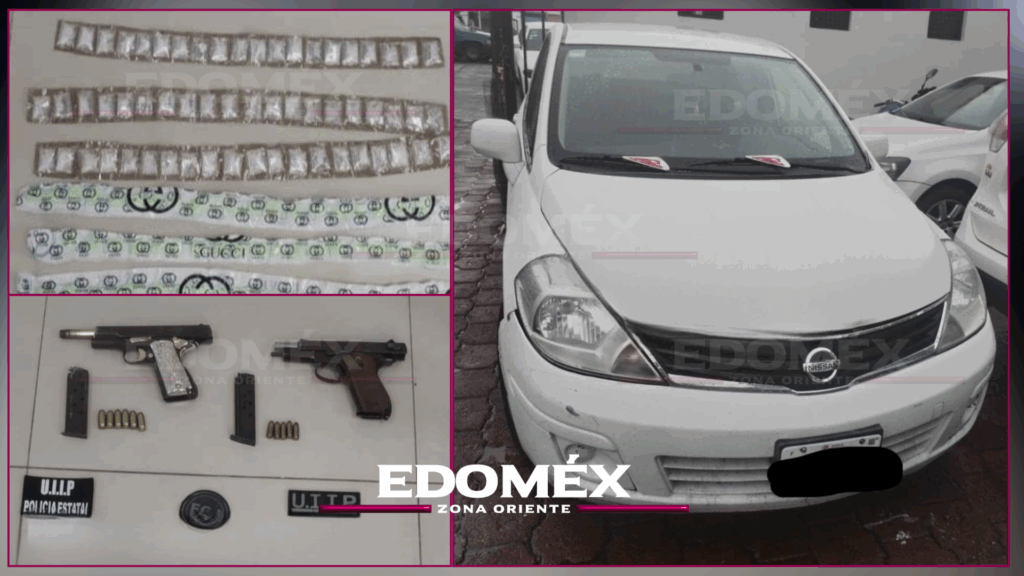 Policías estatales de inteligencia, agentes de investigación de homicidios y elementos municipales de Chimalhuacán lograron la detención de dos personas armadas y en posesión de droga en los límites con el municipio de Nezahualcóyotl.