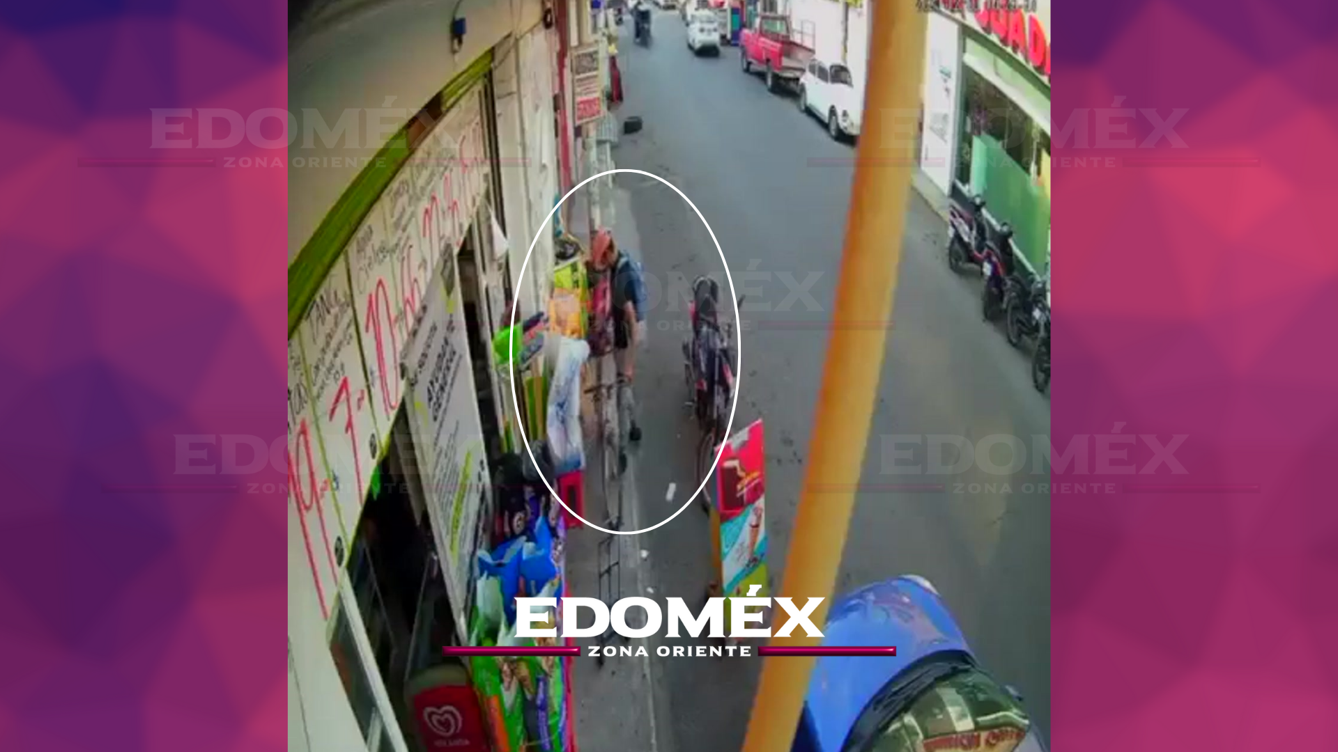 Cámaras de vigilancia de un negocio captaron el momento exacto en que, alrededor de las 4:00 de la tarde, una bicicleta color blanco con asiento negro y rojo fue robada frente a la tienda Abarrotes La Central, ubicada a unos metros de la Guadalajara de Chiconcuac, en el municipio de Chiconcuac, Estado de México.