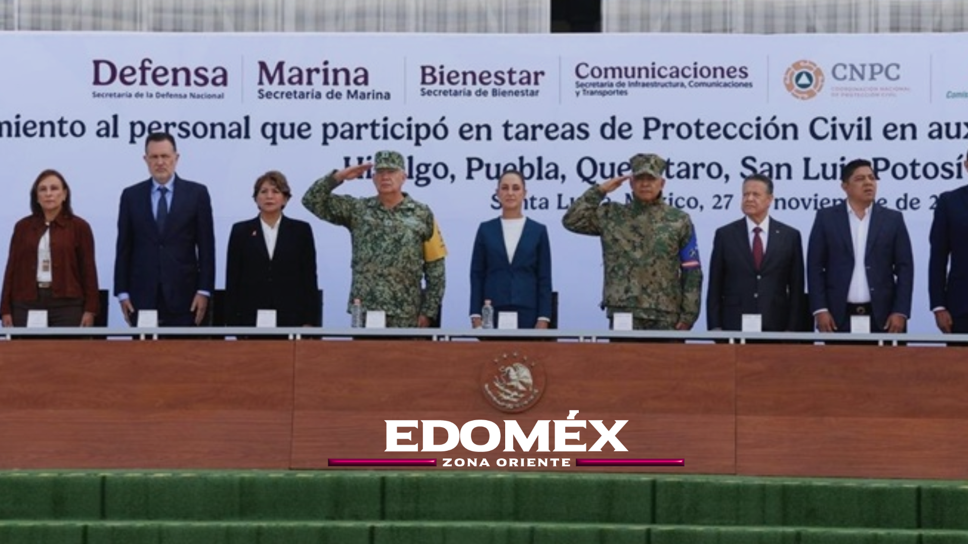 El reconocimiento se llevó a cabo durante la Ceremonia al personal que participó en tareas de protección civil, en apoyo a habitantes de Hidalgo, Puebla, Querétaro, San Luis Potosí y Veracruz, entidades que enfrentaron deslaves, desbordamientos de ríos e inundaciones severas.