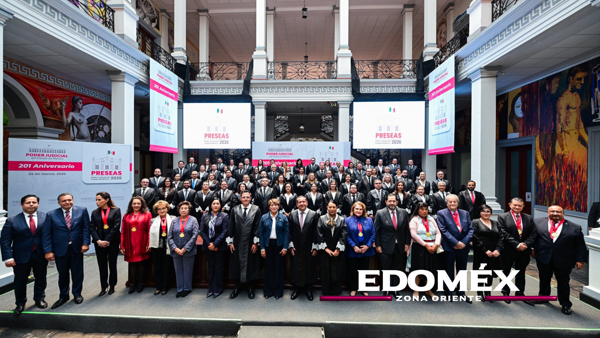 La gobernadora del Estado de México, Delfina Gómez Álvarez, asistió a la Ceremonia de Entrega de Preseas del Poder Judicial 2026, donde destacó la importancia de la justicia como un pilar fundamental para construir una sociedad más igualitaria en la entidad.