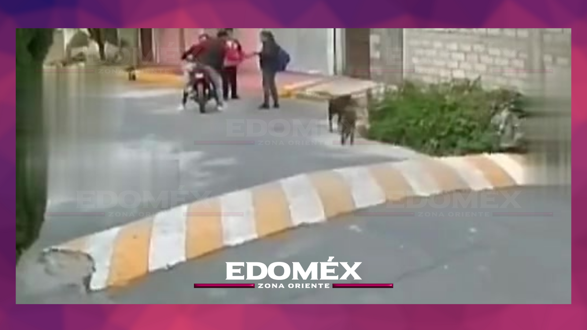 En plena calle Sur 16-A, de la colonia La Guadalupana, en el municipio de Valle de Chalco, Estado de México, dos delincuentes a bordo de una motocicleta fueron captados cuando arrebataron con violencia la mochila de una mujer que caminaba acompañada de su pequeño hijo.