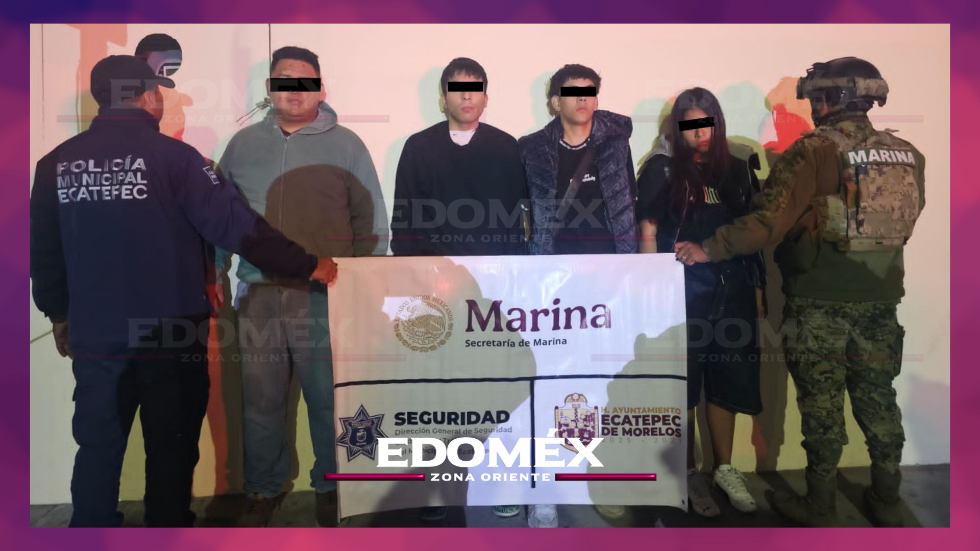 Elementos del Sector 25 detuvieron a tres hombres y una mujer luego de que intentaran escapar al notar la presencia policial, tras haber amagado minutos antes a tres personas con armas blancas para despojarlas de sus celulares en la colonia Melchor Múzquiz, en #Ecatepec, #EdoMéx.