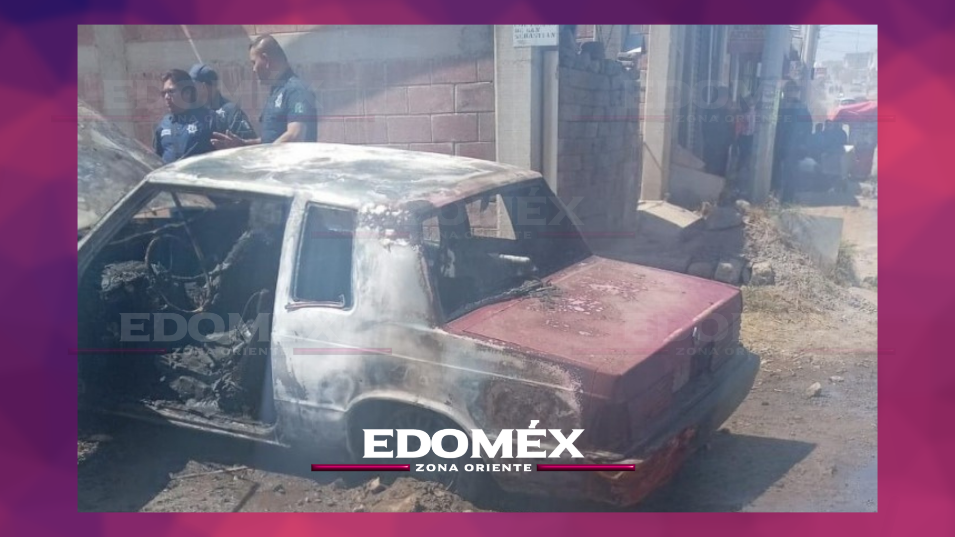 Cuerpos de emergencia acudieron a la comunidad de Lomas de San Sebastián, en la zona cerril de Los Reyes La Paz, #EdoMéx, donde un vehículo de modelo antiguo se encontraba en llamas.
