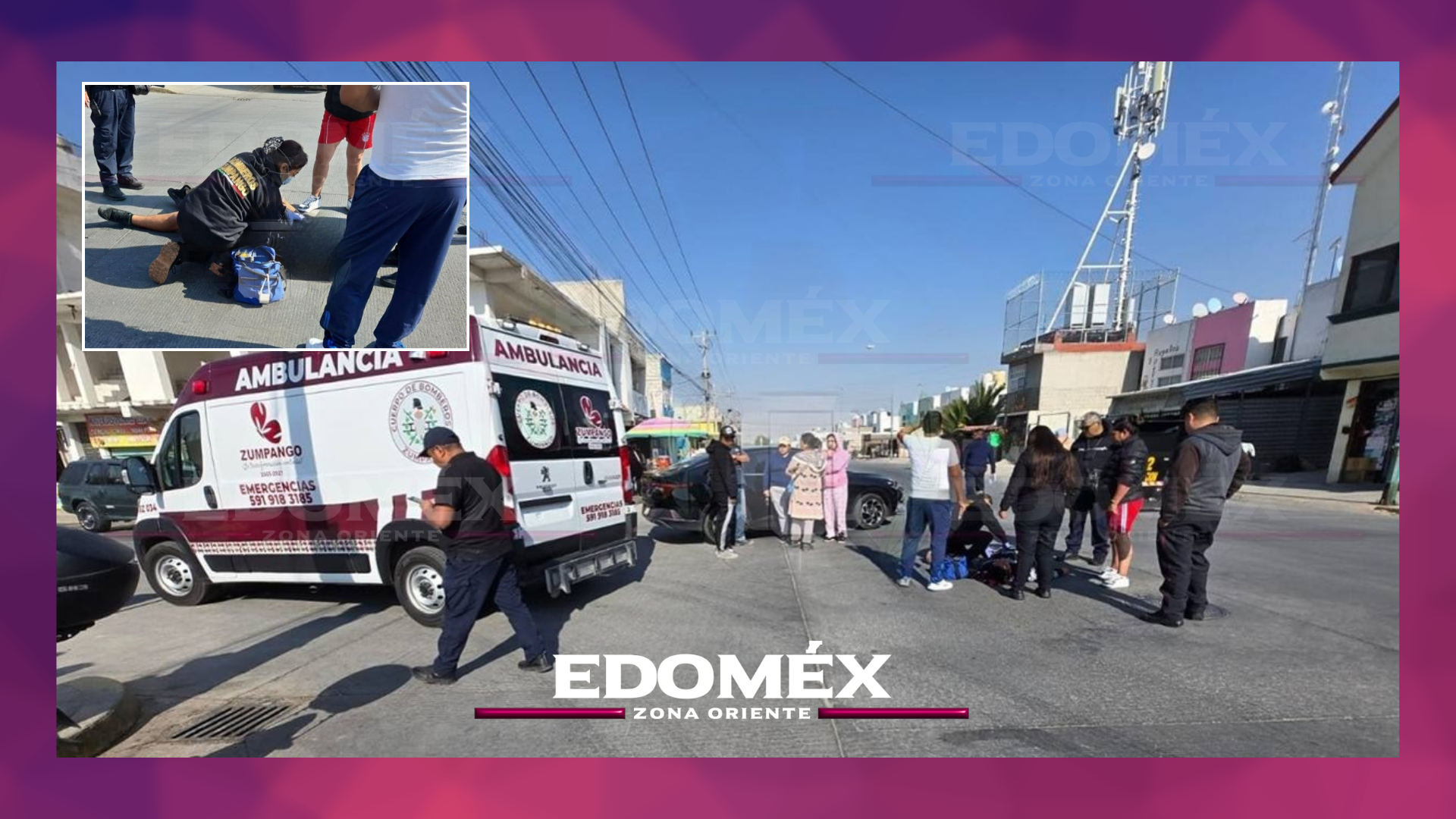 Un percance vehicular entre un automóvil y una motocicleta se registró en el fraccionamiento La Esmeralda, en #Zumpango. Tras el reporte, se activó la unidad prehospitalaria BZ-034 del Cuerpo de Bomberos para atender la emergencia.
