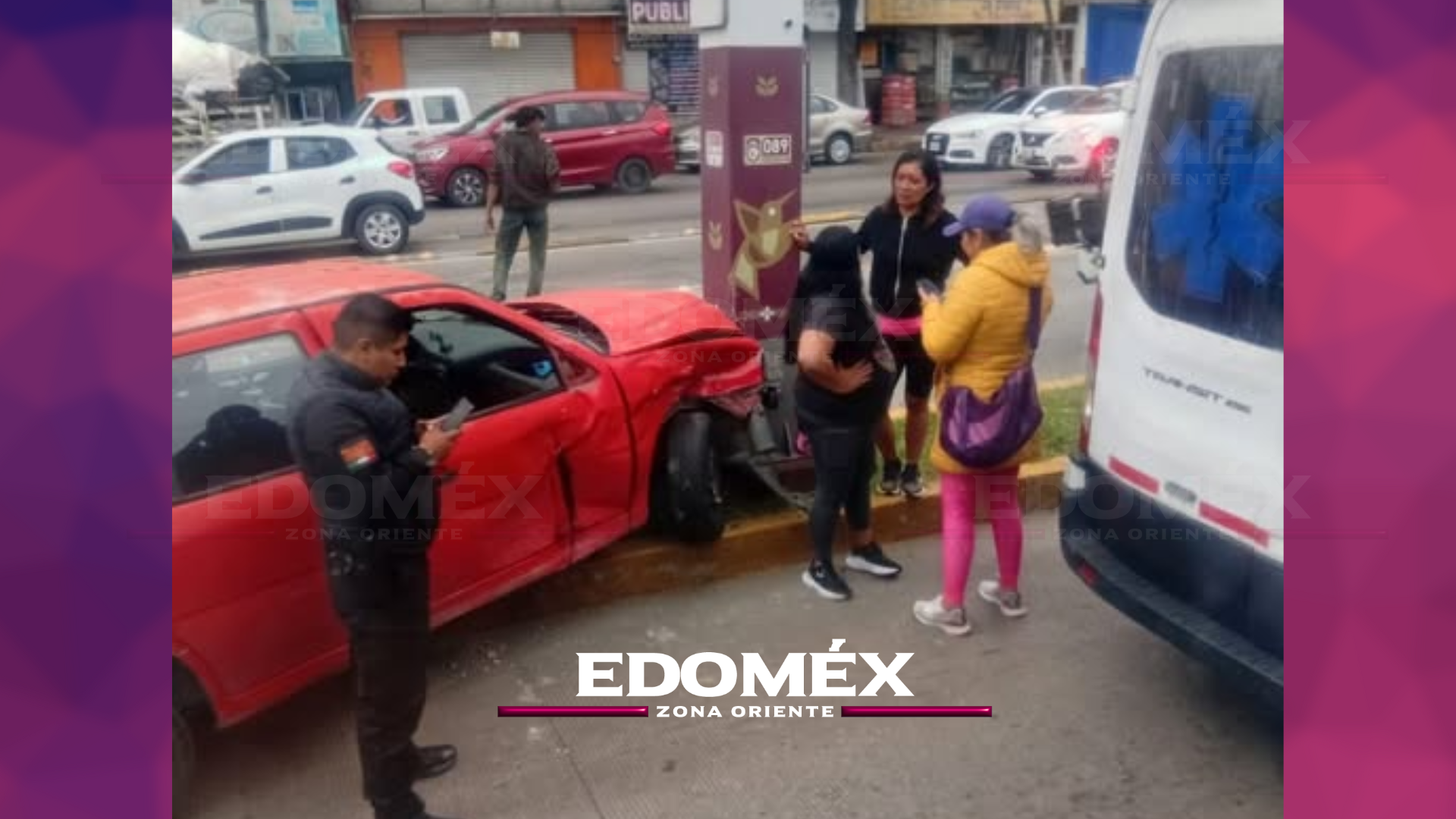 Una automovilista chocó su vehículo contra un poste que sostiene cámaras del C5 Estado de México, ubicado sobre la vía José López Portillo, a la altura de Fovissste, en Ecatepec de Morelos, con dirección a Coacalco.