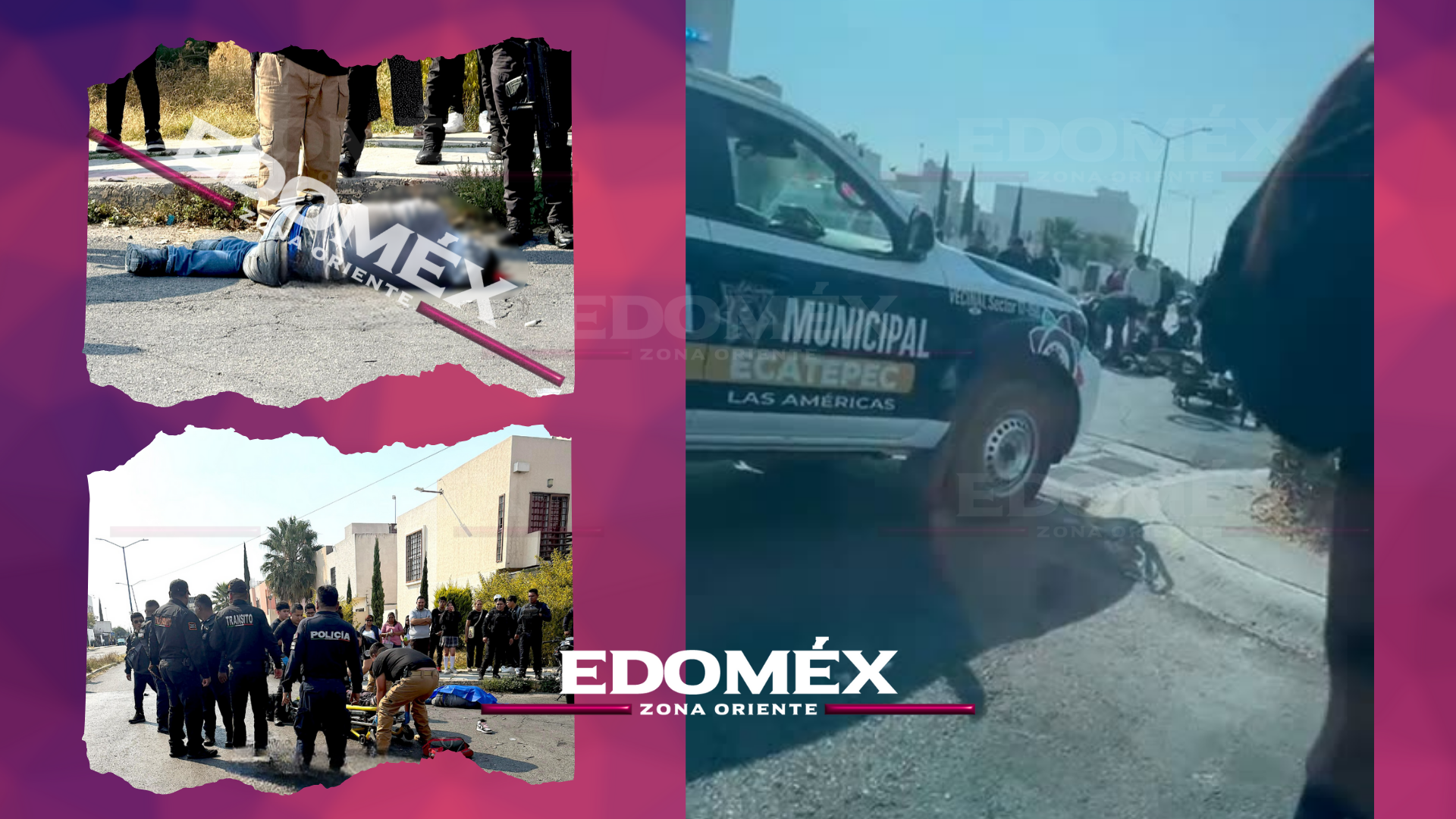 La tarde de este jueves, un aparatoso accidente entre tres motocicletas dejó como saldo a tres personas gravemente lesionadas y a un hombre sin vida en el fraccionamiento Las Américas, en Ecatepec.