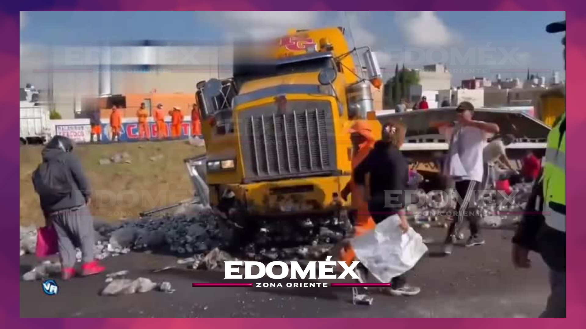 Esta mañana de jueves se registró un accidente en el kilómetro 3 de la autopista México–Pirámides, donde un tráiler que transportaba cerveza volcó, generando movilización de cuerpos de emergencia y elementos de seguridad.