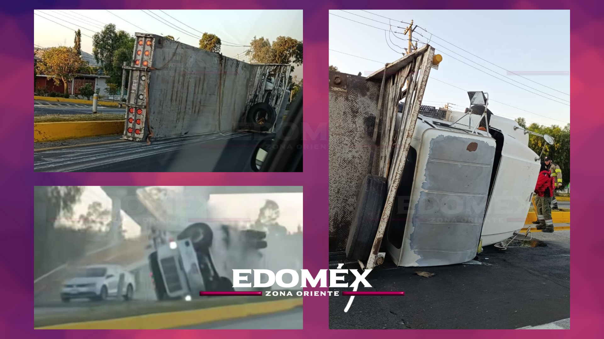 La mañana de este martes se registró un aparatoso accidente sobre la carretera Texcoco–Calpulalpan, a la altura de Santa Inés, donde un camión tipo torton que transportaba bobinas terminó volcándose cuando se dirigía hacia la CDMX.